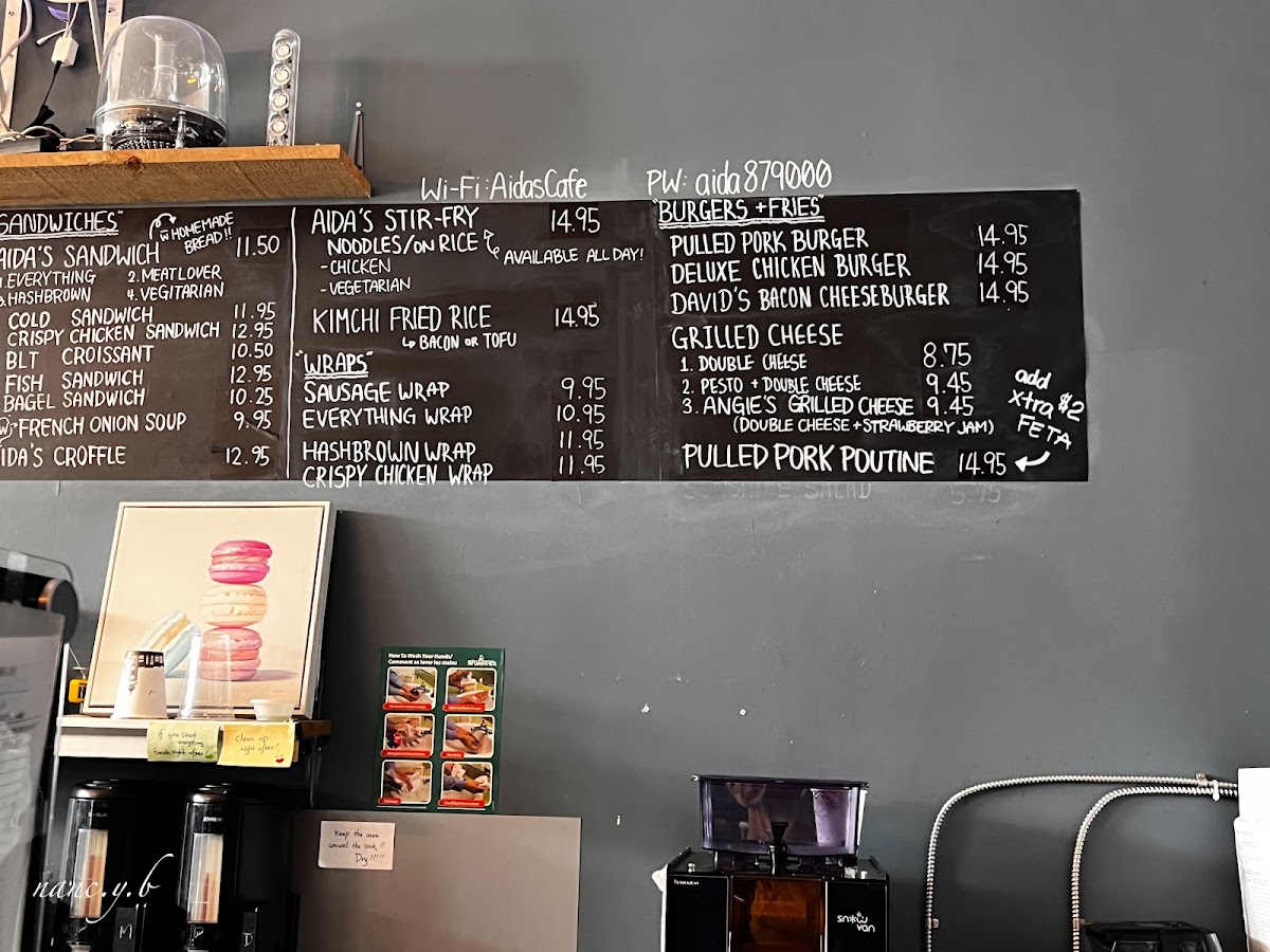 The menu at Aida’s Cafe is thoughtfully curated, offering a fantastic range of options that cater to both cravings and comfort. Start your culinary journey with their signature Ida's Croffle and melt away with the delicious Fish Sandwich at just CA$12.95. If you’re after something hearty, the Crispy Chicken Sandwich (CA$12.95) promises a crispy delight with a tender interior, all served with a smile from the friendly staff who are dedicated to making your experience memorable.